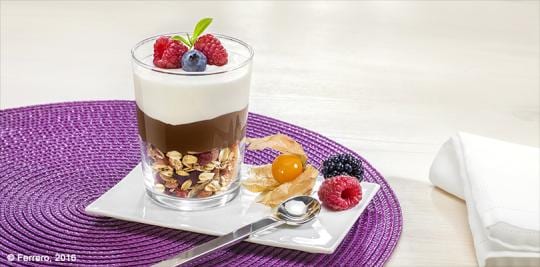 Leg de onderste muffin-helft in een diep glas met 7 g Nutella®. Voeg 120 ml gewone yoghurt toe. Bedek met de andere helft van de muffin. Besmeer de muffin met 7 g Nutella® (of leg er een klodder op).