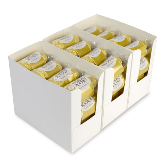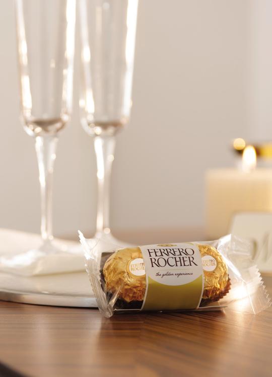 Ferrero Rocher has delicious layers of crispy wafer and hazelnut, covered in milk chocolate and dressed in sparkling gold. Our Ferrero Rocher T2 product is perfect for sharing and helps create a bit of sparkle. The perfect complimentary gift for your guests, customers, clients and visitors.