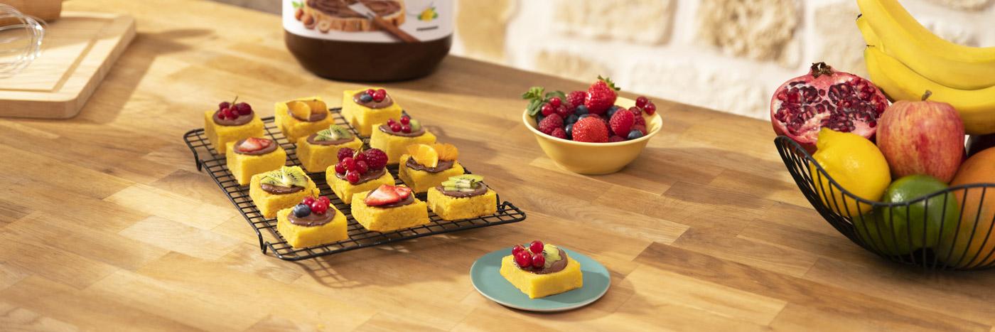 Add the Nutella® topping and the fresh fruit of your choice on top.