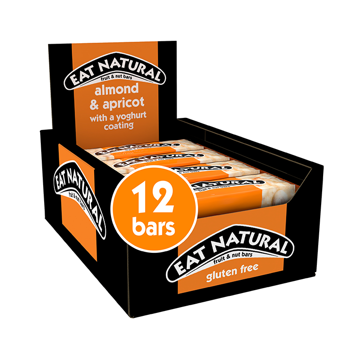 Smooth yoghurt tops caramel-flavoured apricots, crunchy almonds and light puffs of rice. Sweetened and fused together with honey, you’ll also catch a hint of tropical coconut in this chewy bar.