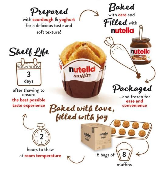 Available in a case of 48 muffin (6 bag of 8 Nutella® Muffins)