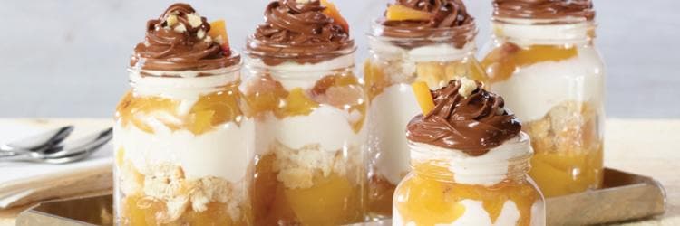 In a heavy bottom pot, cook apples, sugar, butter, water, and vanilla over a low heat until the mixture has a sauce-like appearance and consistency. Set aside to cool. In a bowl, whip yogurt until light and fluffy. Fill the bottom of the crocks with the yogurt. Top the yogurt with the cooled apple mixture nearly to the top of the glass, leaving about ½” of space. Create a decorative swirl on top with 0.5 oz. of Nutella. Sprinkle the toasted hazelnuts to finish.