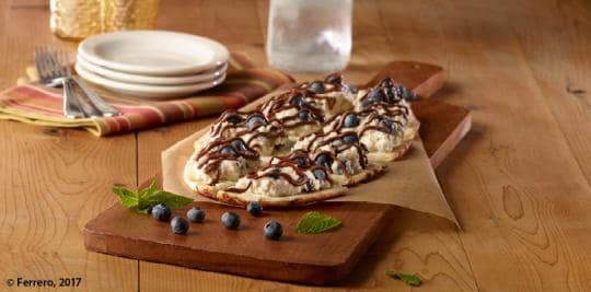 Place Nutella® in a pastry bag with a straight edged piping tip, then pipe decorative design of Nutella® onto the mini Challah bread halves.