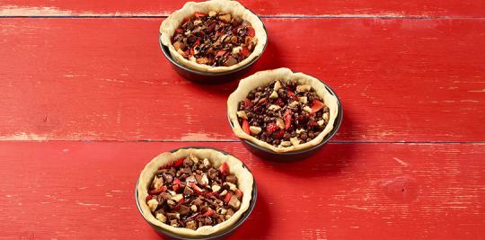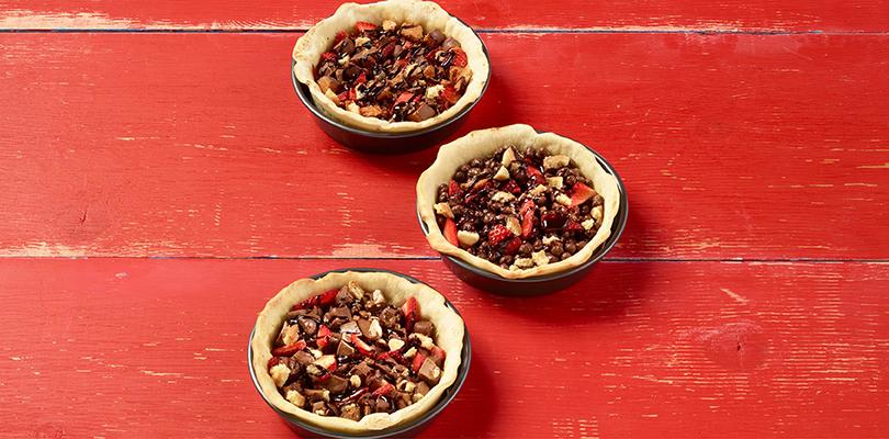 Place the RTU pizza crust on a sheet pan and bake as per instructions*. Remove from the oven to cool slightly. With a pastry knife, spread pizza crust with a thin layer of caramel spread, and top pizza with each type of chocolate, making a 3-way design with each candy having its own section. Apply the strawberry, shortbread cookie pieces over the top of entire pizza crust. Cut pizza into 12 equal slices and dust with powdered sugar.