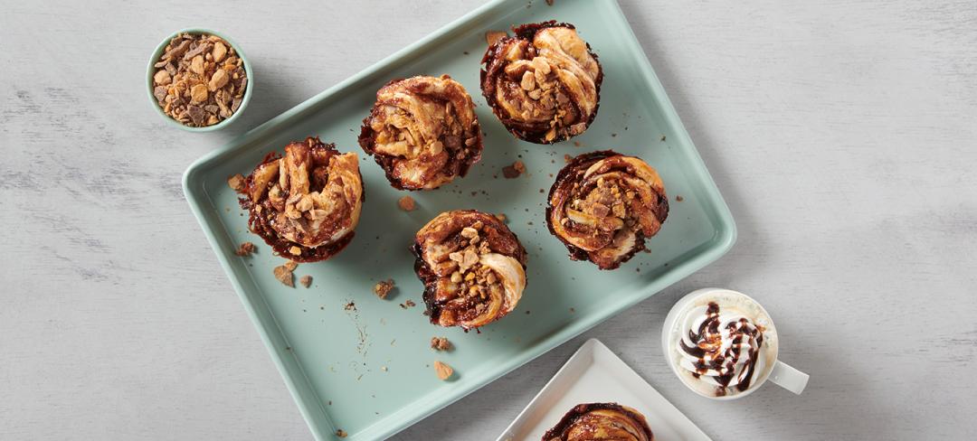 Top the chocolate sauce with the candy and drizzle with remaining chocolate sauce.